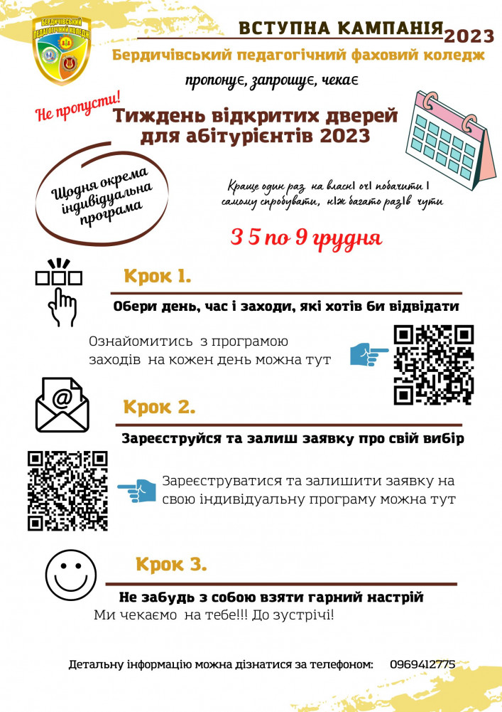 З 05 по 09 грудня запрошуємо і чекаємо абітурієнтів 2023.