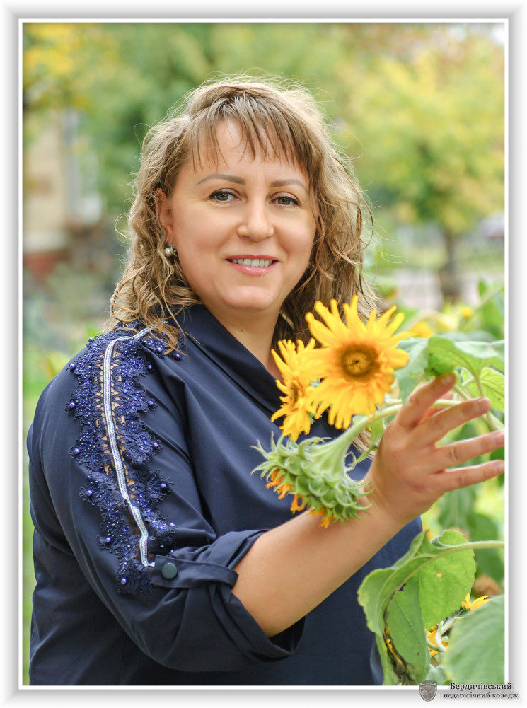 Чернецька Валентина Олександрівна – викладач вищої категорії, магістр біології. Освіту здобула у Ніжинському державному педагогічному університеті імені Миколи Гоголя; пройшла курси відділення післядипломної освіти ДВНЗ Переяслав-Хмельницький ДПУ імені Григорія Сковороди; закінчила магістратуру при Житомирському державному педагогічному університеті імені Івана Франка. Педагогічний стаж: 20 років. Викладає навчальну дисципліну: основи природознавства з методикою ознайомлення дітей з природою та предмет біологія. Створила методичні рекомендації до педагогічної практики з предмету «Основи природознавства з методикою ознайомлення дітей з природою», навчально-методичні посібники: «Ознайомлення дошкільників з представниками тваринного світу. Тип Молюски», «Ознайомлення дошкільників з представниками тваринного світу. Клас Комахи», «Методика знайомлення дітей з природою в схемах та таблицях», «Створення безпечного розвивального середовища ЗДО. Отруйні рослини», у співавторстві з Аллою Лагутою створила навчально-методичні посібники: «Пошуково-дослідницька діяльність як засіб формування пізнавальної активності дошкільників»; «Дидактичні ігри та вправи для дошкільників. Світ природи»; «Екологічні акції як форма організації екологічного виховання студентів», «Хвилинки милування природою як засіб екологічного виховання дошкільників». Застосовує у викладанні проектні технології із використанням ІКТ, online-сервіс Google Classroom. Під час дистанційного навчання використовує сервіси від національної освітньої платформи «Всеосвіта» та освітнього проекту «На Урок» для створення онлайн-тестів; олімпіади та конкурси як додатковий інструмент для мотивації. Працює над формуванням інноваційної моделі коледжу, як центру розвитку якісної освіти засобами інноваційних технологій навчання із використанням ІКТ при викладанні навчальної дисципліни: основи природознавства з методикою ознайомлення дітей з природою, предмету біологія та створенням електронних посібників для студентів з предмету «Основи природознавства з методикою ознайомлення дітей з природою». |