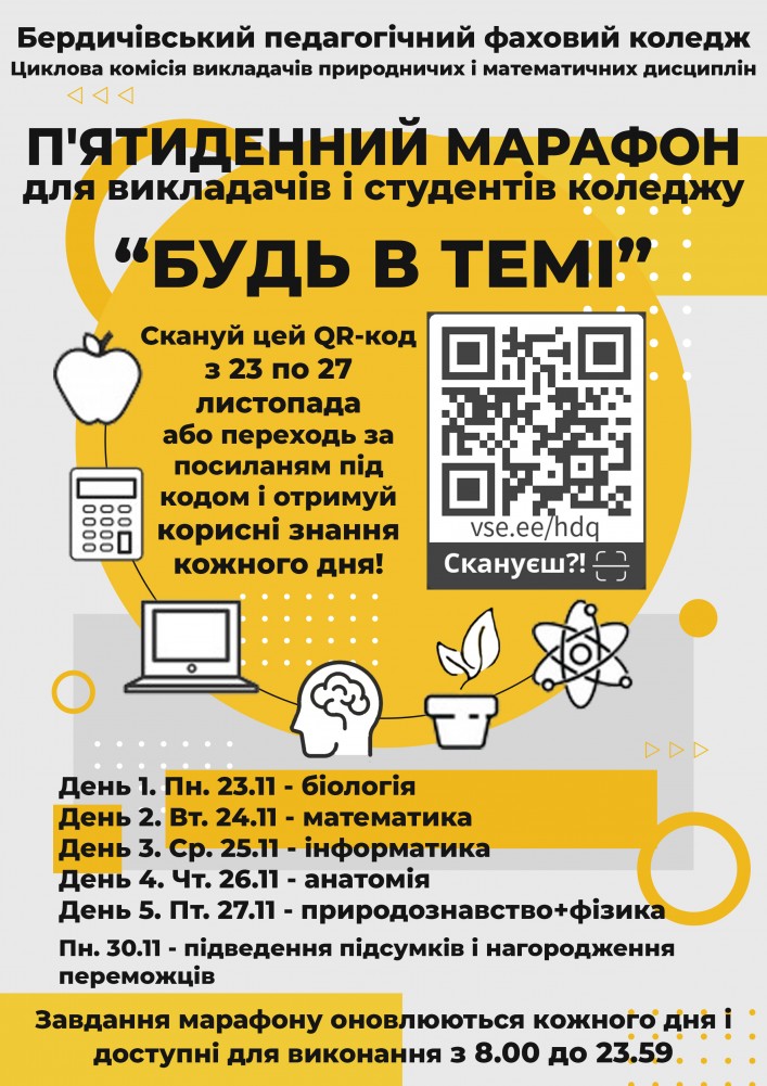 Розпочинаємо п'ятиденний марафон для викладачів і студентів Бердичівського педагогічного фахового коледжу "Будь в темі"!