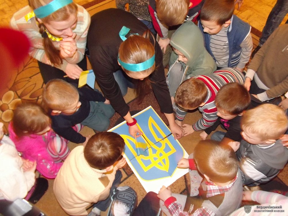 Виховання патріотизму є одним з головних завдань дошкільних установ. Для цього в дитячих садочках виділяють чимало часу. Відтак і ми, студенти-практиканти, на педагогічній практиці в дошкільних навчальних закладах намагаємось постійно долучатись до виховних заходів національно-патріотичного спрямування, аби донести дітям той дух патріотизму, ту любов до Батьківщини, якими сповненні наші серця - серця українців, народжених в незалежній Україні. Тому зовсім невипадково 22 січня, у День Соборності України, ми, студенти–практиканти ІІ-А курсу, провели ознайомлювальні заняття на національно-патріотичну тематику в ДНЗ № 15, 22, 28. У цікавій, ігровій, доступній формі малята дізнались про події, що відбувались 22 січня 1919 року і лягли в основу Дня Соборності, пригадали державну символіку, створили ланцюг єдності.
