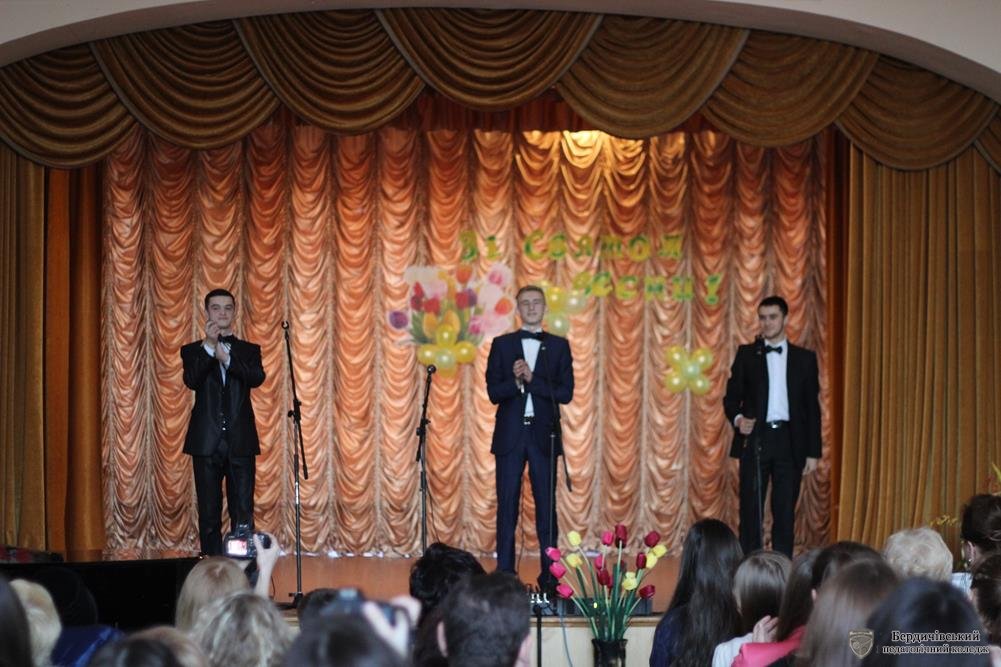 Ця святкова атмосфера не оминула і Бердичівського педагогічного коледжу. Аби її утримати і дати можливість прекрасній половині колективу відчути цю ауру на повні груди, хлопці та чоловіки коледжу організували концертний вечір, присвячений її величності – Жінці.