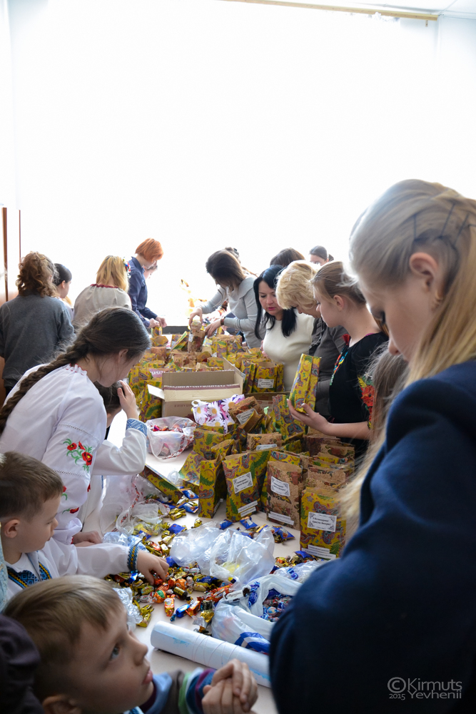 І ось у переддень Світлого Воскресіння Христового - свята добра, любові, оновлення світу - уся ця когорта однодумців зібралась у стінах Бердичівського педагогічного коледжу, аби вкласти частинку своєї душі, тепла, любові у подарунки для хлопці фронту. У ці адресні, індивідуальні пакунки кожен учасник акції вніс щось своє - по-особливому ніжне, трепетне, смачне, щире. Студенти коледжу подбали про оригінальні пакетики з щемними надписами «Повертайтесь живими! З перемогою повертайтесь!» та вітальні плакати з душевними побажаннями для хлопців, коледжани закупили близько 40 кг солодощів, батьки та бабусі студентів випекли більш як 250 пасочок, вихованці дитячих садків власноруч зробили крашанки, обереги, вітальні листівки з по-дитячому трепетними підписами. Наче у вулику кипіла робота: малеча пліч-о-пліч з студентами, викладачі коледжу поруч з педагогами дитячих садків. І в результаті - 250 Великодніх пакунків, близько 10 ящиків з солодощами, щирі відеовітання для воїнів і вир незабутніх емоцій, відчуття задоволення від зробленої доброї справи та гордість за свій народ.