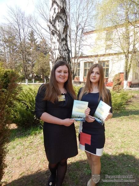Приємно відзначити, що студенти нашого коледжу не залишилися осторонь цього заходу. Достойно представили Бердичівський педагогічний коледж на І-й Обласній історико-краєзнавчій студентсько-учнівській конференції студентки ІІІ курсу групи «М» Романчук Наталія та Кирницька Валерія (науковий керівник – викладач Григорцевич Н. П.)