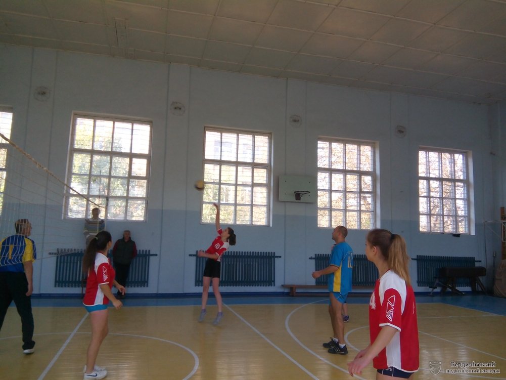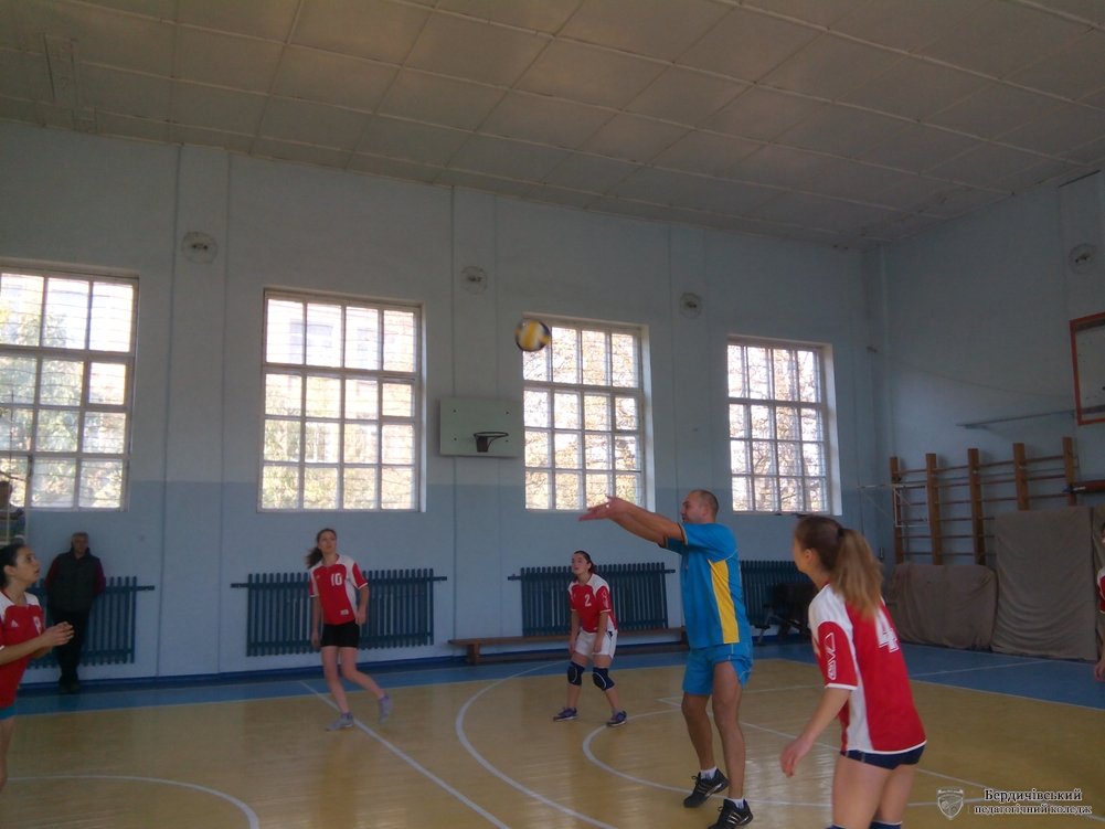 14 жовтня, у День захисника України, на волейбольному майданчику спортивної зали Бердичівського педагогічного коледжу зустрілись дві команди: жіноча команда студентів та збірна команда викладачів. Цю гру учасники дружної зустрічі вирішили присвятити усім захисникам України. Та особливою вона стала ще й тому, що серед гравців був один із захисників – Сергіюк Олег Онуфрійович – працівник коледжу, котрий демобілізувався два тижні тому. Бурхливими оплесками зустріла спортивна зала Олега Онуфрійовича, а він наповну віддався грі, демонструючи спритність, витривалість, спортивну майстерність.