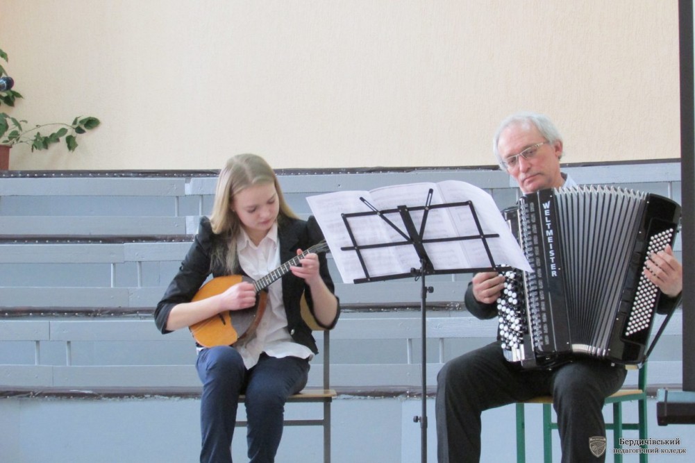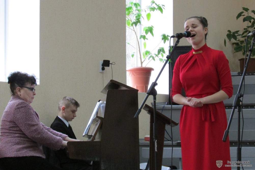 Звуками чарівного вальсу порадував дует студенток II-М курсу в складі М. Франчук та Л. Шнеренко. Вони з гордістю представляли комісію викладачів гри на фортепіано. Вихованка студії естрадного співу А. Никонюк (I-М) під керівництвом В. Дубцова вразила гостей своєю майстерністю. Комісію викладачів хорового диригування презентував чоловічий ансамбль під керівництвом Т. Дем'янчука жартівливою веселою піснею про наше чудове місто Бердичів.