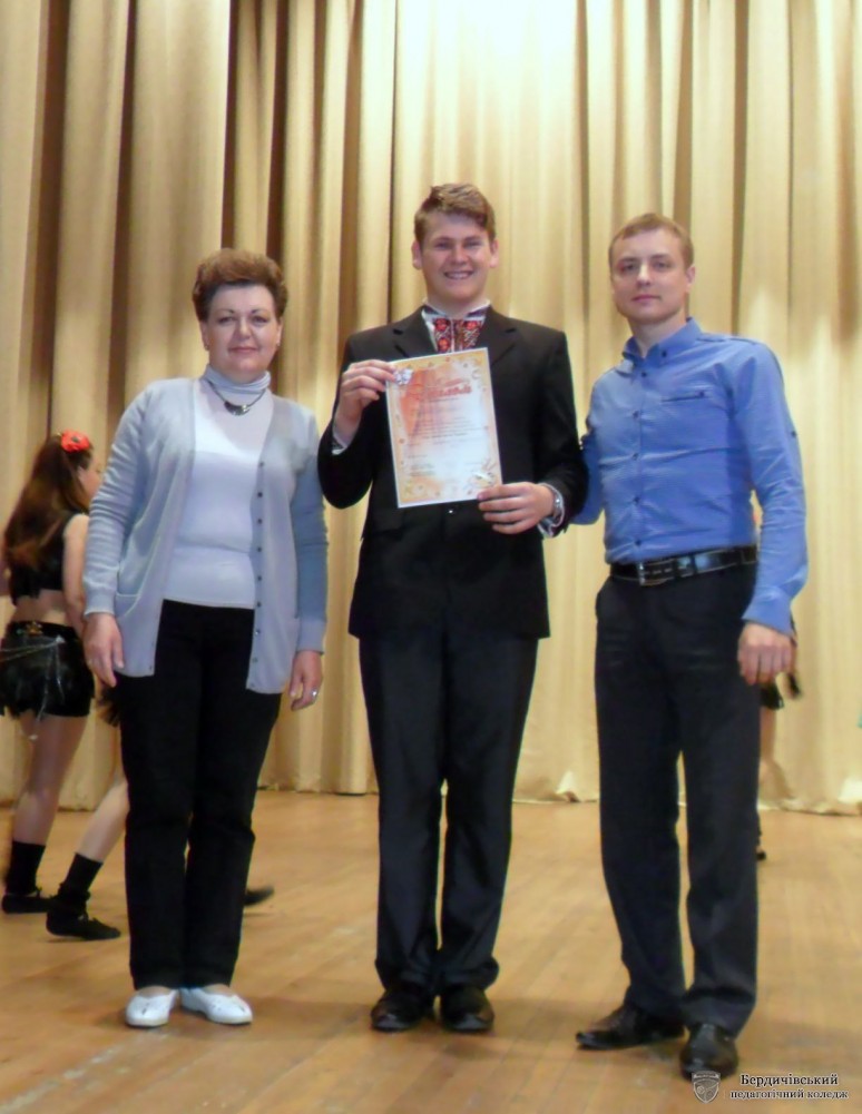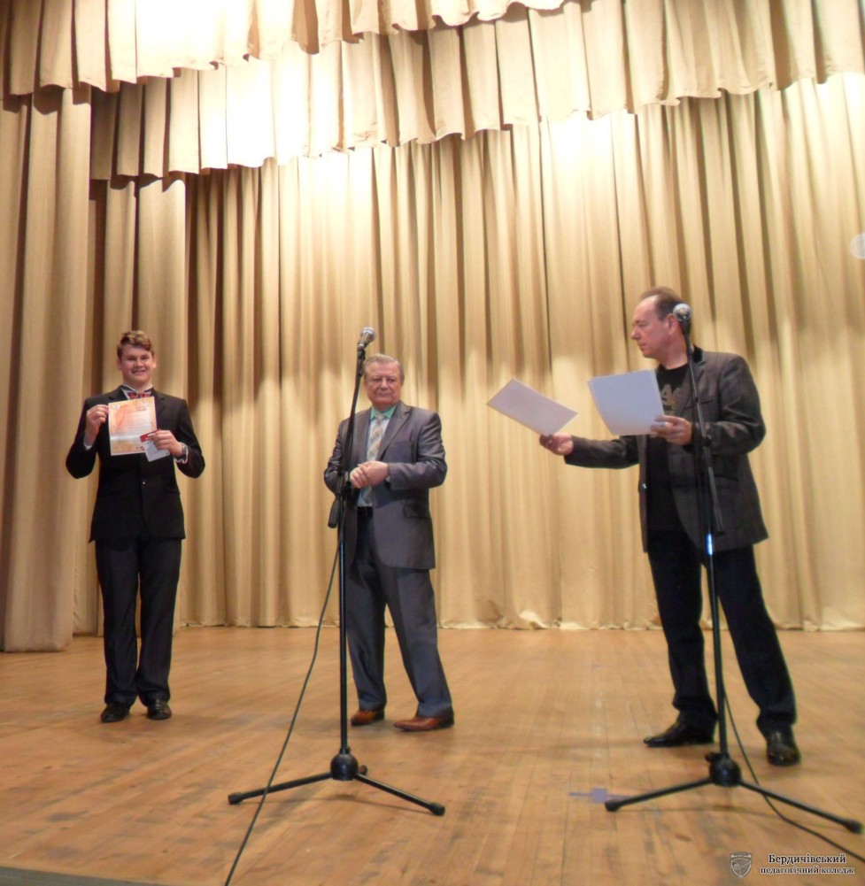 У номінації академічний спів (сольне виконання) студент третього курсу Бердичівського педагогічного коледжу музичного відділу Шамрай Михайло в нелегкій боротьбі здобув диплом першого ступеня.