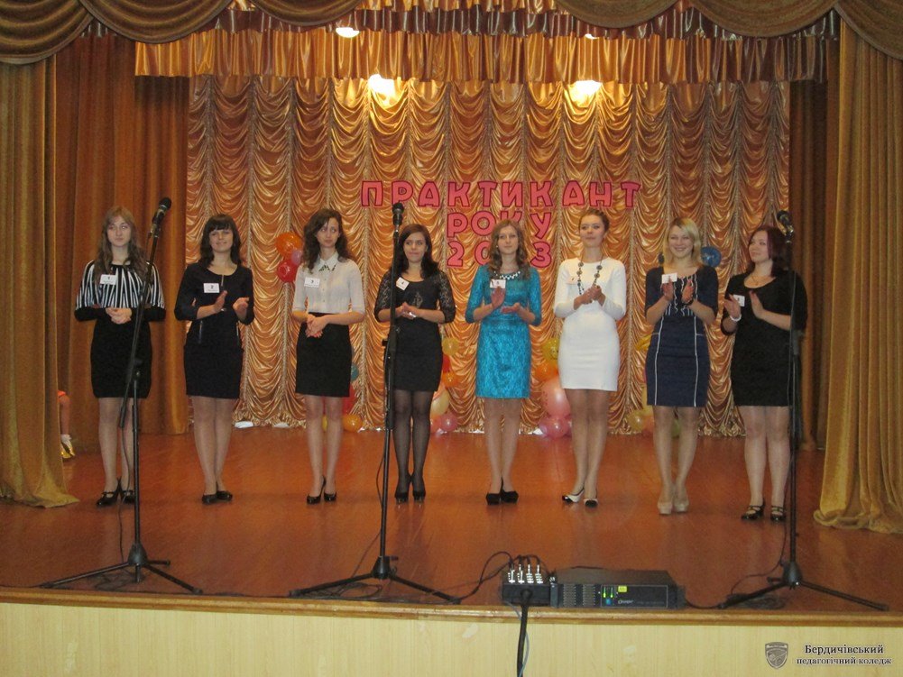 Добігає до кінця 2013 рік. Грудень підсумовує здобутки, досягнення, успіхи. А у Бердичівському педагогічному коледжі у цей період, вже традиційно, проходить конкурс професійної майстерності «Практикант року 2013». Ось і цьогоріч 8 студенток випускних курсів відділення «Дошкільна освіта - учасниці конкурсу – змагалися у методичній грамотності, креативності, професійних уміннях та навичках, демонстрували свої здібності та таланти. Журі конкурсу представляли завідуючі та методисти ДНЗ міста під керівництвом голови – методиста інформаційно-методичного центру з питань дошкільної освіти – Катинської І. І.