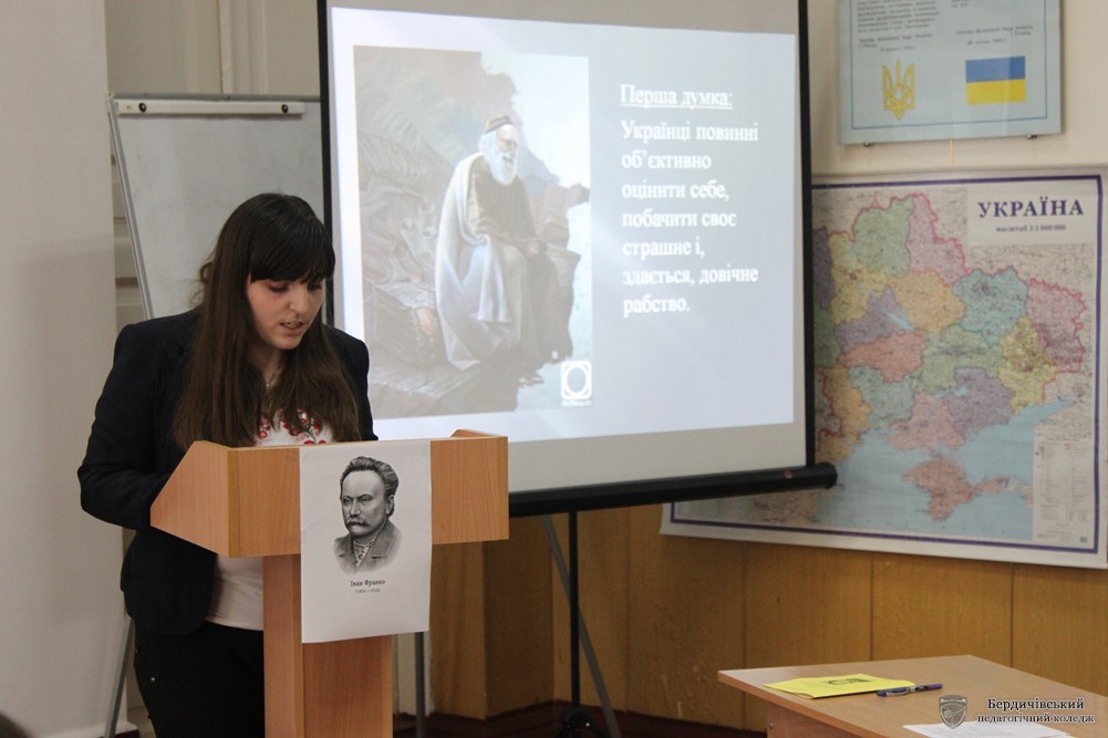 Перше червня. Початок літа. Багато планів, ідей, сесія на носі, а студенти нашого Бердичівського педагогічного коледжу відмітили цей день особливо урочисто: під керівництвом Бабійчук Тамари Василівни була проведена студентська науково-практична конференція: «Іван Франко: сучасний погляд на життя митця і його твори». Розглядалися різноманітні цікаві, для декого донині невідомі факти з життя генія, його творчої діяльності та спадщини.