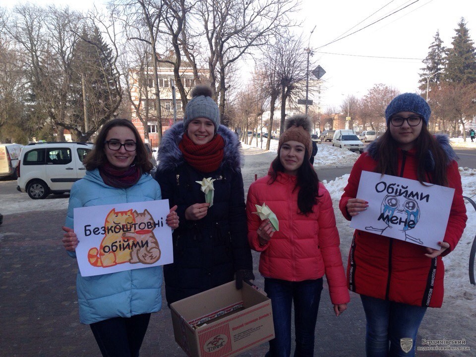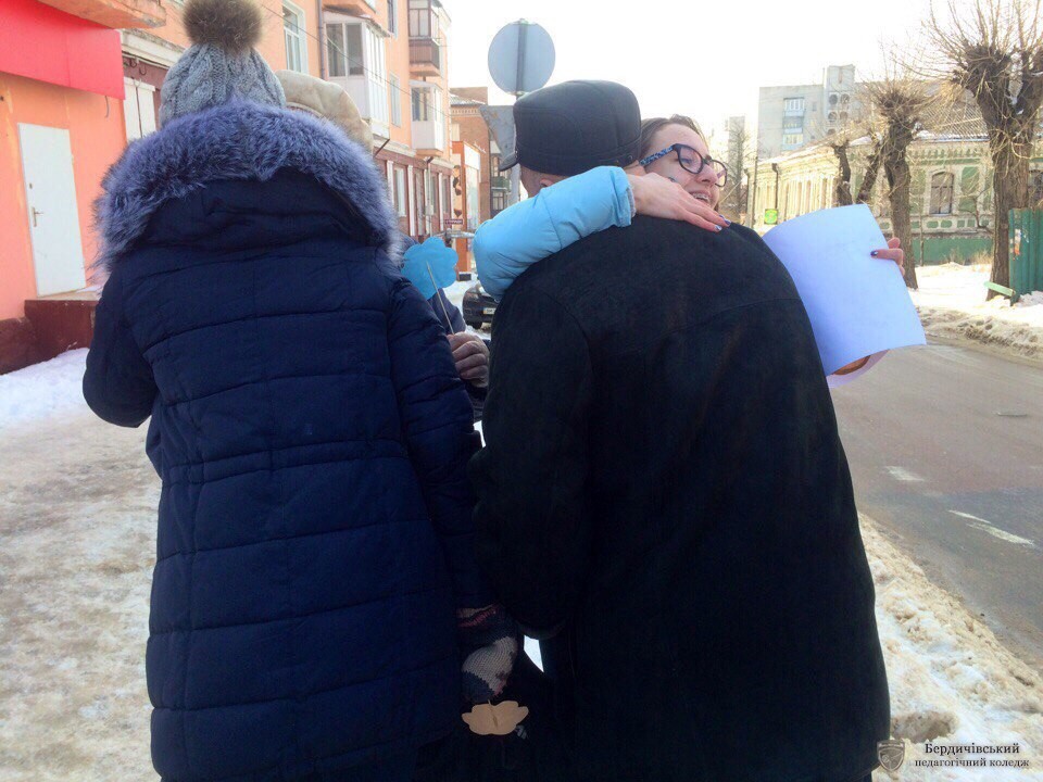 Унікальна дата 17 лютого дає можливість кожному з нас стати трішки добрішими і огорнути турботою та увагою ближніх. В такий морозний і зимовий день всі просто мусять зігрівати один одного посмішками та обіймами. Так і сталось, - вже традиційно студенти Бердичівського педагогічного коледжу у День спонтанного прояву добра діляться своїм теплом та піклуванням не лише з коледжанами, а й з мешканцями міста.
