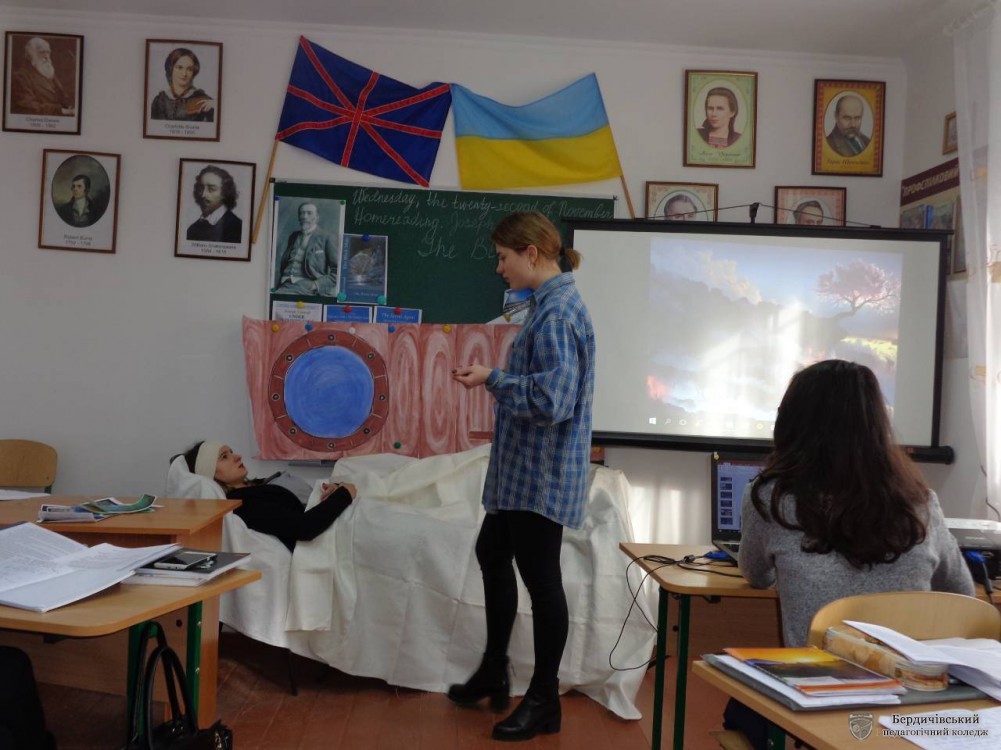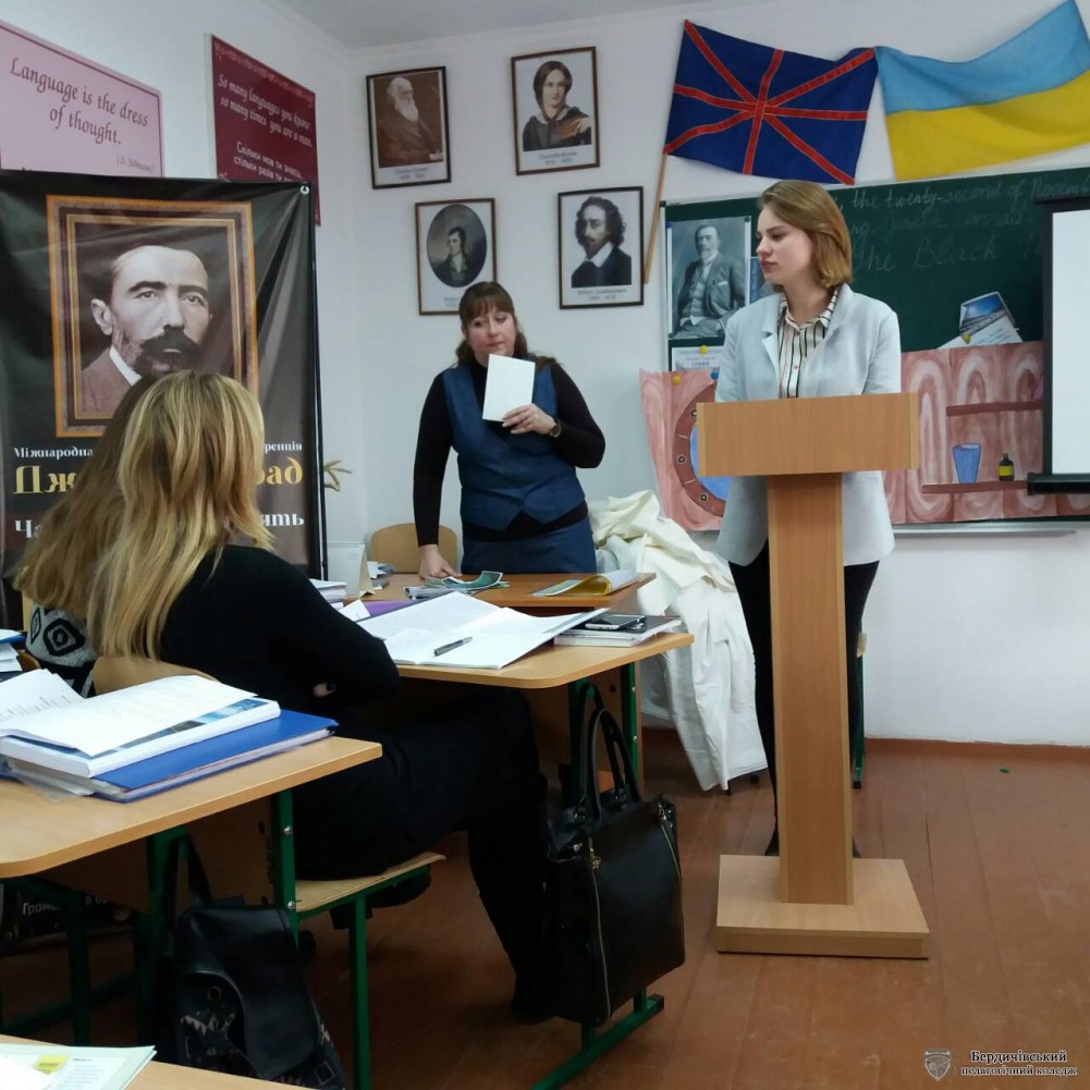 На занятті з англійської мови (викладач – Гилярська О.І.) було запропоновано поглинути в атмосферу активної практичної роботи на занятті домашнього читання, присвяченому Джозефу Конраду та детальному аналізу його твору «Чорний штурман». Гості мали нагоду не тільки побачити різноманіття лексичних, фразеологічних, творчих вправ, складання та презентацію діалогів, інсценізацію, але й побувати на науковій конференції.