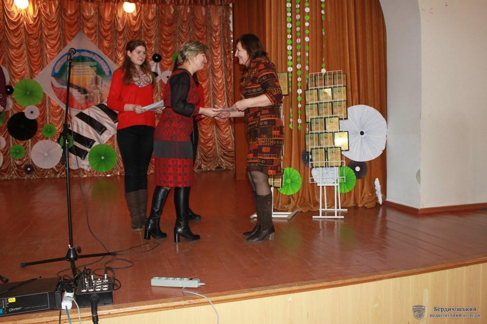 День другий був насичений не меншим хвилюванням в очікуванні результатів ІІІ-го фестивалю-конкурсу вокально-інструментальної творчості учнівської молоді. І знову звучить музика, що єднає: зал завмер, слухаючи гру оркестру народних інструментів педколеджу під керівництвом Сергія Ртіщева. Гала-концертвражав різноманітністю номерів і майстерністю виконавців, які натхненно славили рідну землю, співали про кохання і мрії, чарували звуками фортепіано, бентежили душу мелодіями баяна, дивували віртуозною грою на ксилофоні, зворушували ніжністю голосу домри й захоплювали експресивним танго на гітарі. Із символічної вежі на сцені поступово знімали нагороди фестивалю: 12 учасників отримали дипломи з відзнакою, 7 – дипломи ІІІ-го ступеня, 8 – ІІ-го і 8 – І-го. Їх вітали почесні гості: начальник управління освіти Бердичівської міської ради Світлана Басюк,директор МПК ім. О Шабельника, заслужений працівник культури України Олена Петрівська, члени журі, а також педагоги коледжу –директор Алла Лейчук і викладачі Ірина Жеревчук та Ольга Яблонська.