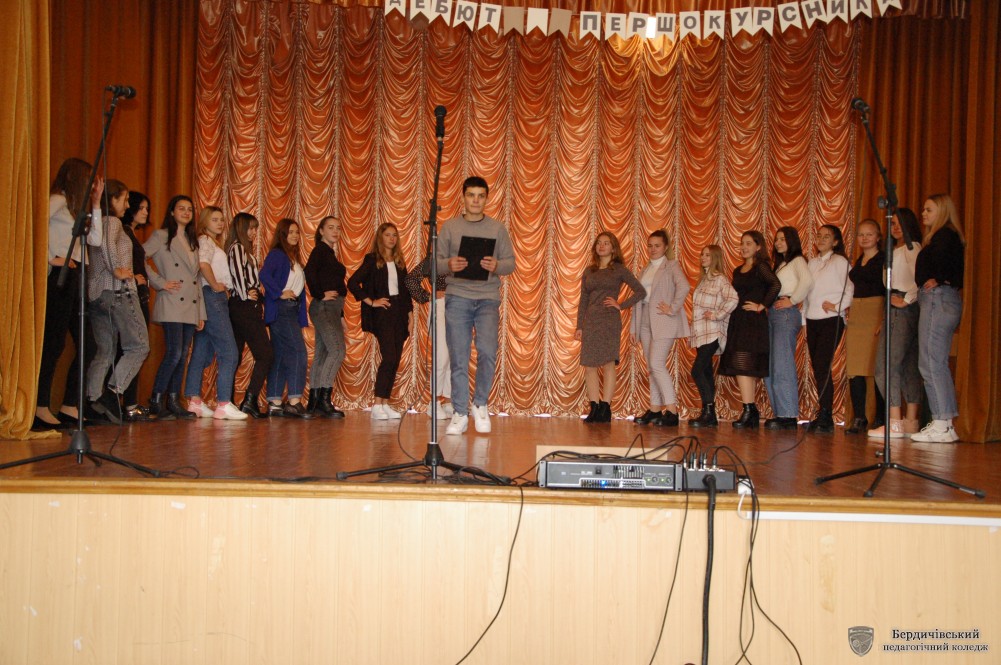 Дебют відбувся! Рівень креативу просто зашкалював. Молодечі енергія і запал за лічені хвилини заповнили актову залу і відчувалось, що їм було там мало місця. Наші першокурсники вперше презентували себе на великій сцені коледжу.