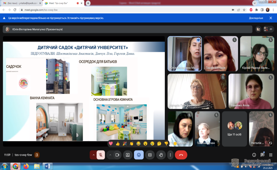 25 грудня викладачі дошкільної педагогіки та фахових методик нашого коледжу долучилися до роботи регіональної педагогічної вітальні «Сучасний заклад дошкільної освіти: виклики, інновації, рішення». Захід, організований КЗ СОР «Лебединський педагогічний фаховий коледж імені А. С. Макаренка», став дієвим простором для фахового діалогу та обміну досвідом.