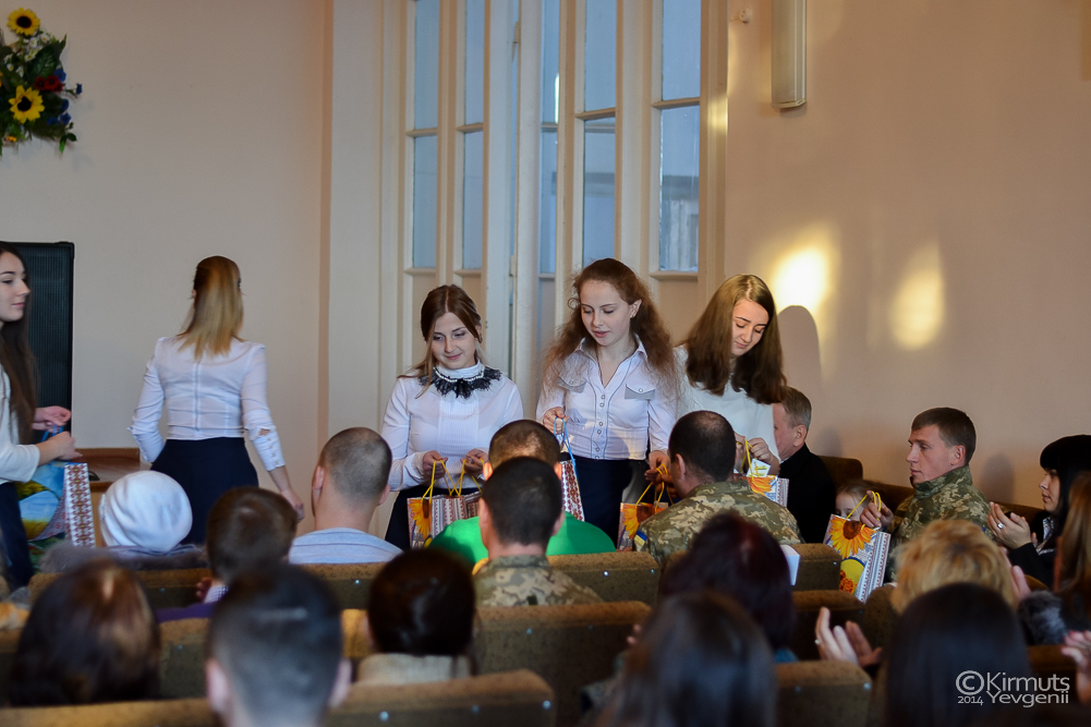 14 жовтня, у День Захисника Вітчизни, українського козацтва та свято Покрови Пресвятої Богородиці, студенти-волонтери за співпраці з міським центром соціальної служби для сім'ї, дітей та молоді відвідали сім'ї воїнів, теплими словами привітали захисників, а дітей пригостили солодощами. Ті емоції, що читалися на обличчях, здавалось на перший погляд незворушних, військовослужбовців, та вдячність, яку висловлювали їхні дружини, батьки, діти, дали нам зрозуміти - ці люди справді потребують нашої підтримки, допомоги, уваги. Власне це і надихнуло студентів на нові ідеї.