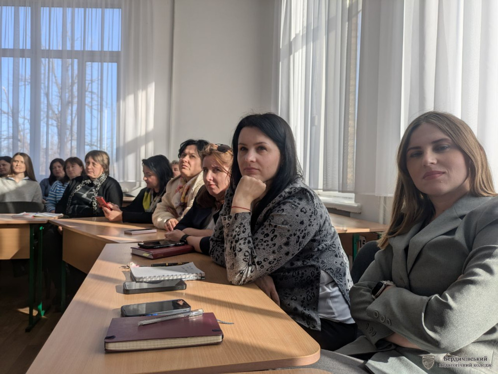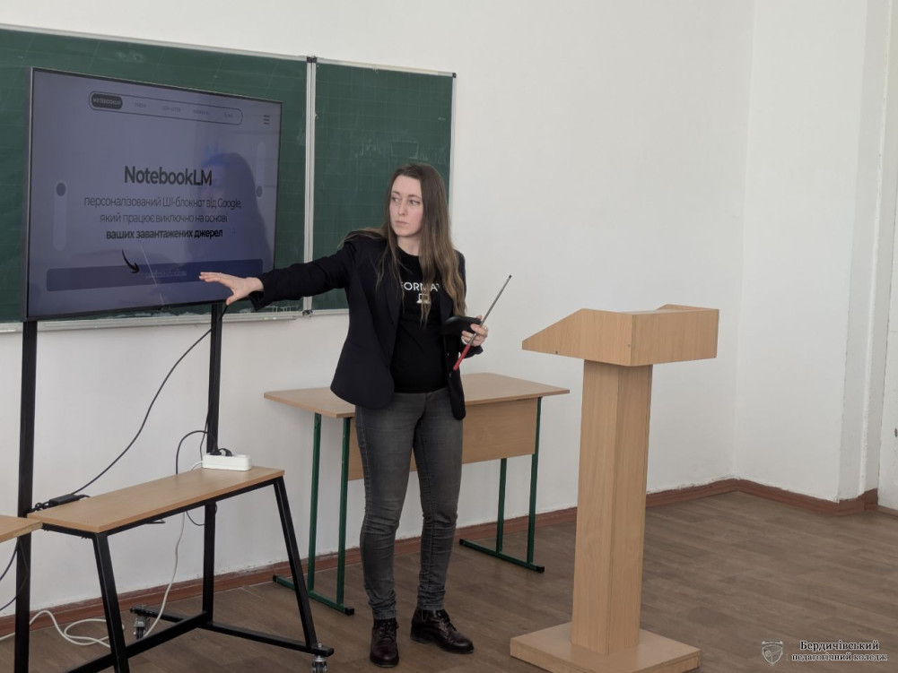 Модератор заходу, методист коледжу Наталія Іванівна Гордійчук, розпочала зустріч з дискусійних питань: Чого більше – ризиків чи можливостей? Чи не витіснить ШІ викладача? Чи не призведе до знеособлення освіти і втрати емоційного контакту із здобувачами? Чи не виникне залежність від технологій?