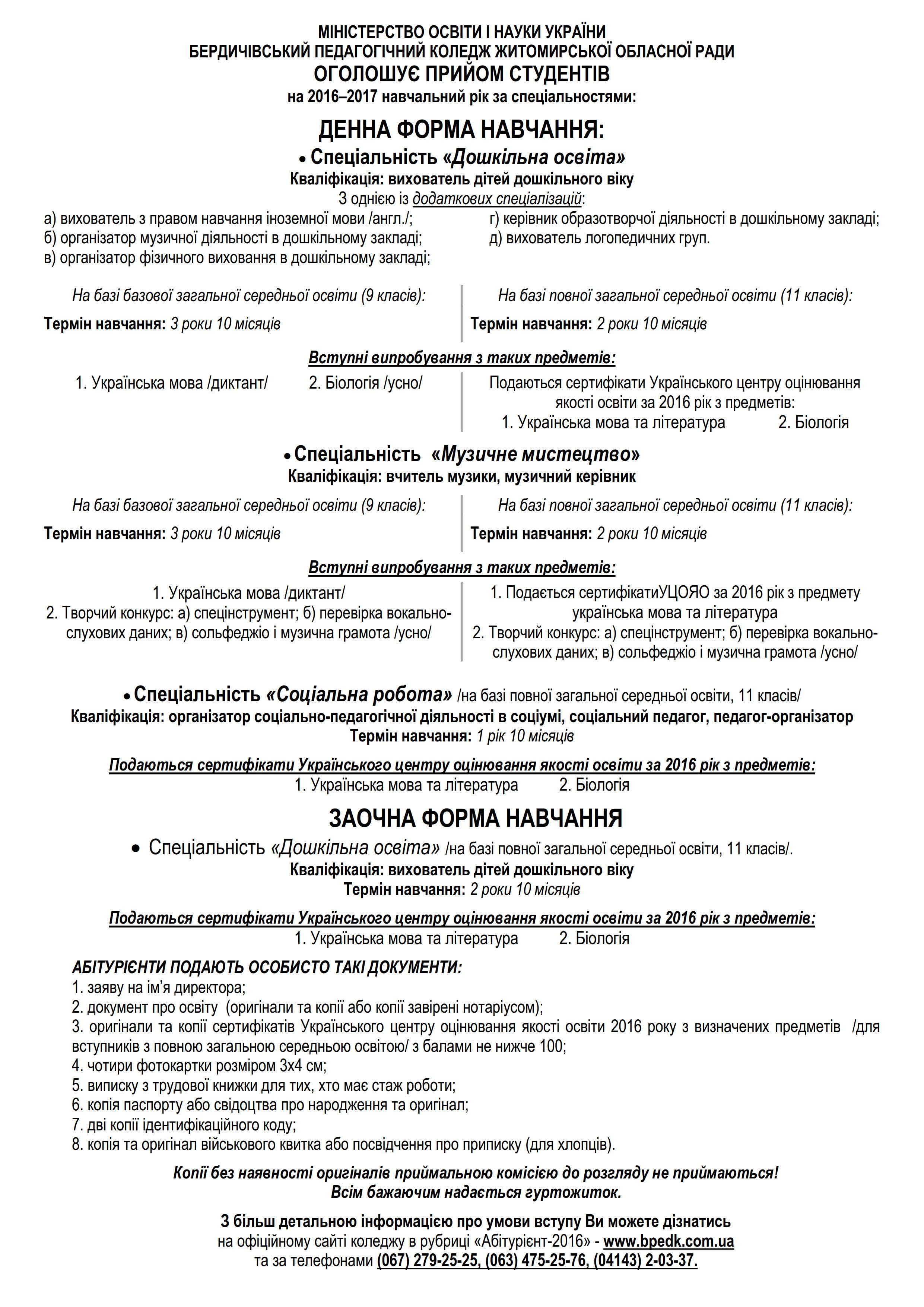 Модель випускника Бердичівського педагогічного коледжу